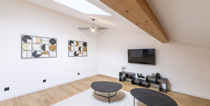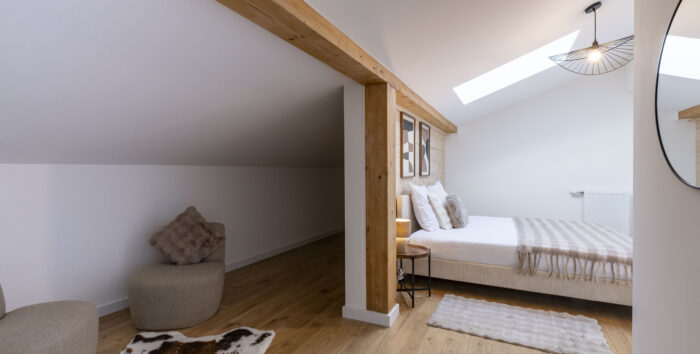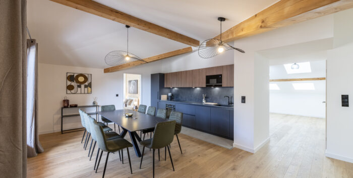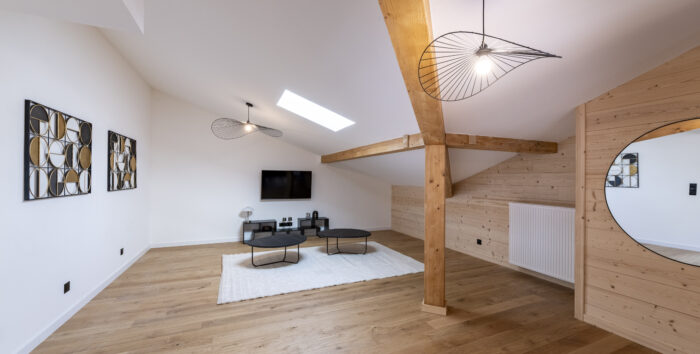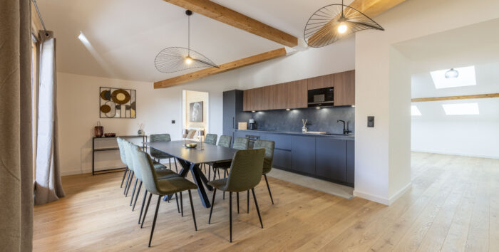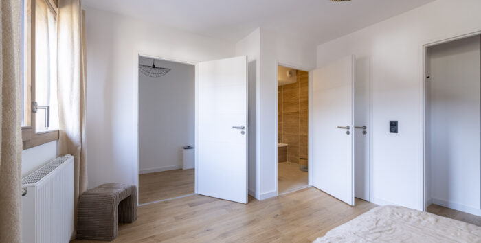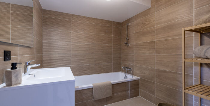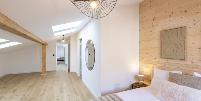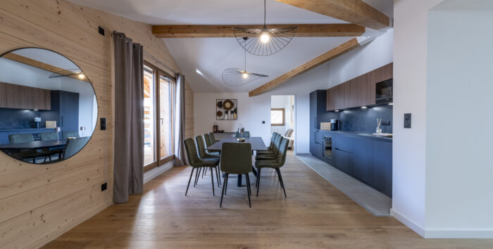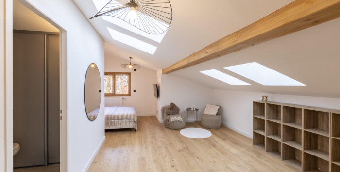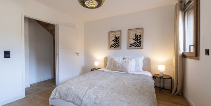 Qu’il s’agisse des parquets ou des carrelages grès, les finitions intérieures ont été soigneusement sélectionnées pour créer de véritables cocons. Ici, chaque détail contribue à la création d’un ensemble douillet, proche de l’esprit chalet. Côté équipements, chaque appartement dispose d’un cellier sur le pallier, pour faciliter et optimiser les rangements pendant les périodes de location.