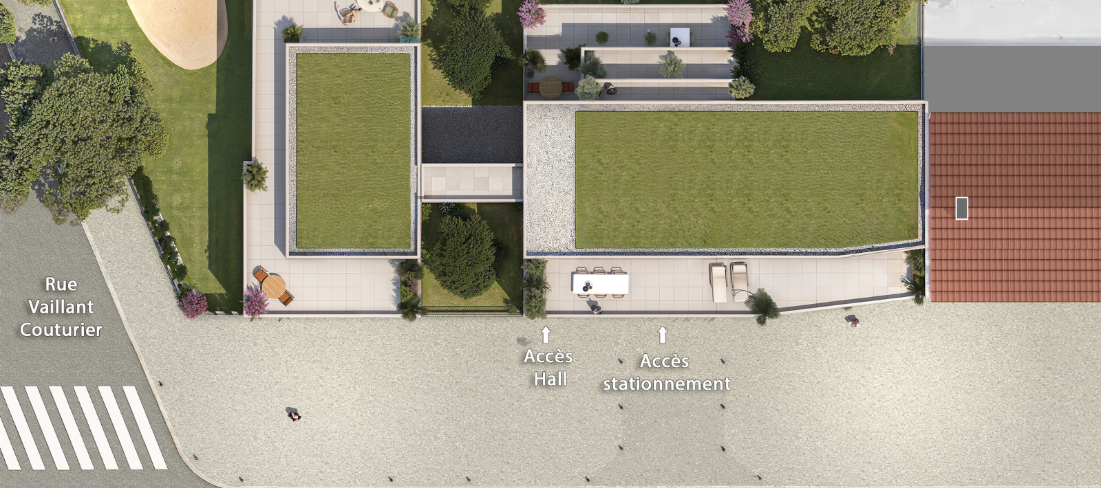 L’ensemble s’intègre harmonieusement dans le tissu urbain, en dialogue avec le square Vaillant-Couturier voisin.